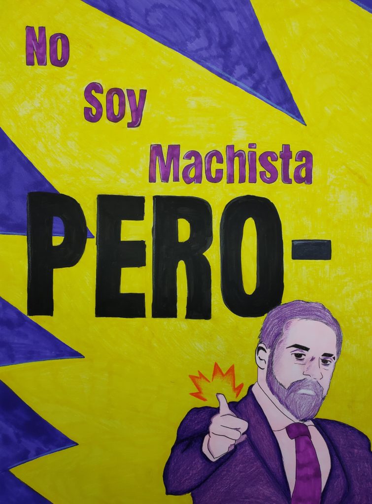 Esta obra/cartel sugiere una crítica a frases justificativas del machismo.